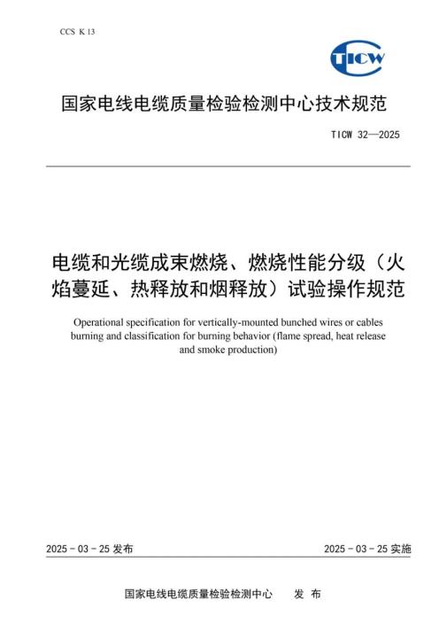 首頁 > 新聞中心 >行業(yè)新聞 >國纜檢測(cè)發(fā)布電纜和光纜成束燃燒(熱釋放、煙釋放)性能試驗(yàn)操作規(guī)范
